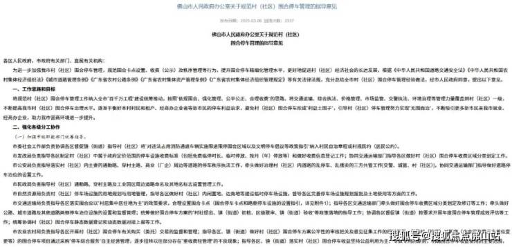 为了进一步解决这类问题,《佛山市人民政府办公室关于规范村(社区)围合停车管理的指导意见》于3月正式发布。