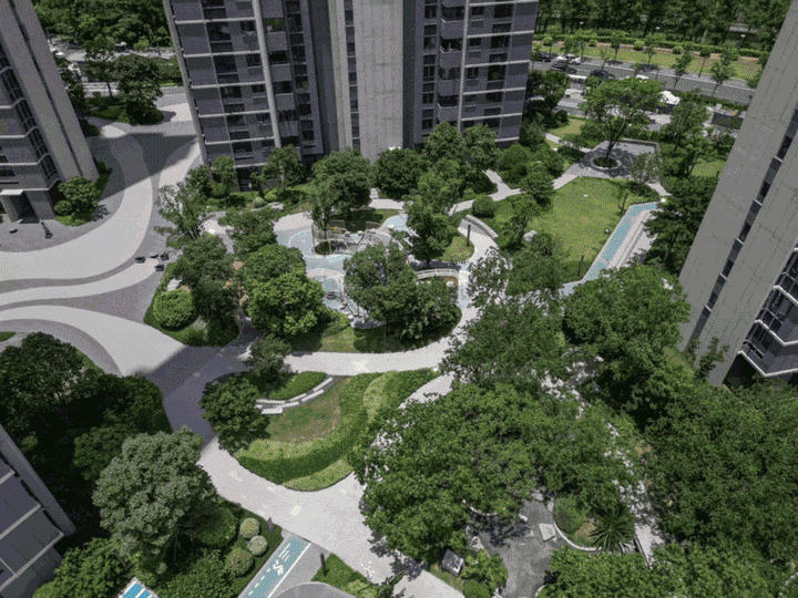 项目总占地约3.6万方,其中中央园林面积达3.1万方,绿化率31%,以“森系漫游”为主题,打造十大园林景致,五重归家礼序。