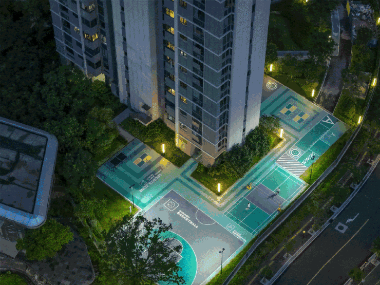 篮球场、羽毛球场、乒乓球场兼备,周末楼下就可以“以球会友”。