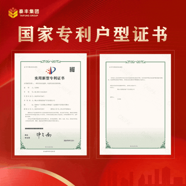 产品打造上,泰丰千玺湾目前在售5、6栋建面约133-143㎡三至四房,3.1米层高,高于市面常见的2.9米层高设计,户型设计不仅获得国家级专利证书,在设计、交标上,更拿出十足诚意。