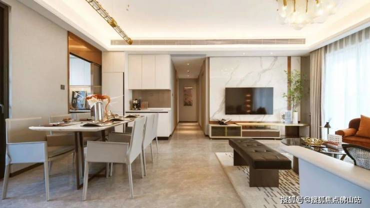 餐客厅一体化,在视觉上瞬间放大几倍,整个空间开阔通透,从容容纳三代同堂、三餐四季。