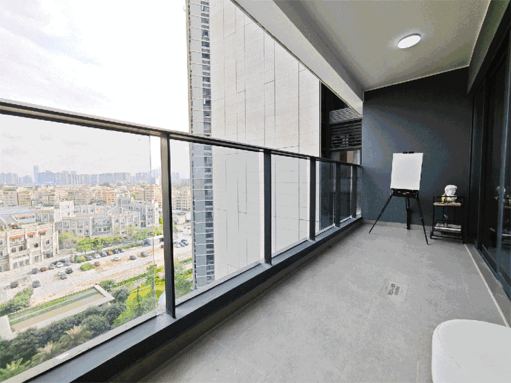 最大亮点是敞亮奢阔的公共空间,约5米客厅开间,大阳台长约5.8米,四开间朝南。