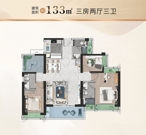 还有建面约133㎡产品,市面上同样畅销。